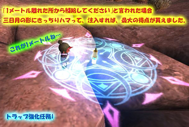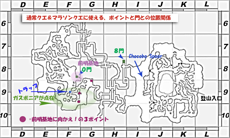 アビセアアットワも思ったより早く、上がります。 初期で受けられて 且つ、簡単なクエストは2つだけです。 まずは、拠点で①②の2つとも受けちゃいましょう ①前哨基地に向かえ! (G-10)拠点 Chapi Galepilai >依頼 Supply Pointの場所 (画像をクリックすると拡大画像が見られます。) 3か所を調べ>前哨基地0門付近に居る Morlepicheに報告>クリア ②大気汚染の調査 (G-10)拠点 Yoran-Oran>依頼を受ける。 0門から飛んだ辺りに点在する Gasponia(ガスポニア) を調べ、 「ガスポニアの雄しべ」を入手(ランダム) Yoran-Oran に報告>クリア。 ①>②と進んだら アビセア工作任務(カンパエ風OPS) これはAF3で必要な抵抗軍戦績も貯まりますし、名声も上がり一石二鳥 ③前哨基地にいる Resistance Sapper から(クエではありません) 「トラップ強化任務 I」のオファーを受け (注意: トラップ強化任務の「II」は、トラップが離れており道中NMもおり 時間も掛かりますので、是非「I」をやられたが吉かと<(_ _)>) 0門に飛び、南西側にあるトラップ(近いです)に、燃料を注入するだけです。 トラップ強化任務Iは ヴァナ1日1回だけしか受けられません 補給より断然 楽w なお ①>②>③任務×3回で、名声がランク2まであがり ④チョコボの焦心苦慮(福運の翠色ジェイド)<ワシ今ココ ⑤大地からの噴煙 (癒しの翠色ジェイド) ④⑤とも発生しました。(はえぇー) PR Comments無題Posted by yuri 2010/10/19(Tue) 13:38:30 EDIT チョコボの焦心苦慮